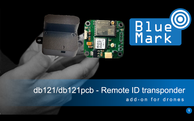 Remote Identification or Remote ID for short is a wireless license plate to identify drones. This technology is mandatory in Japan, the USA and soon in the EU for most drones. Today, BlueMark extends the family of RemoteID transponders with the db121 and db121pcb: a RemoteID broadcast module without battery.